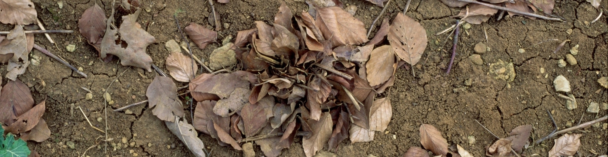 Blaetter von Regenwuermern zusammengezogen